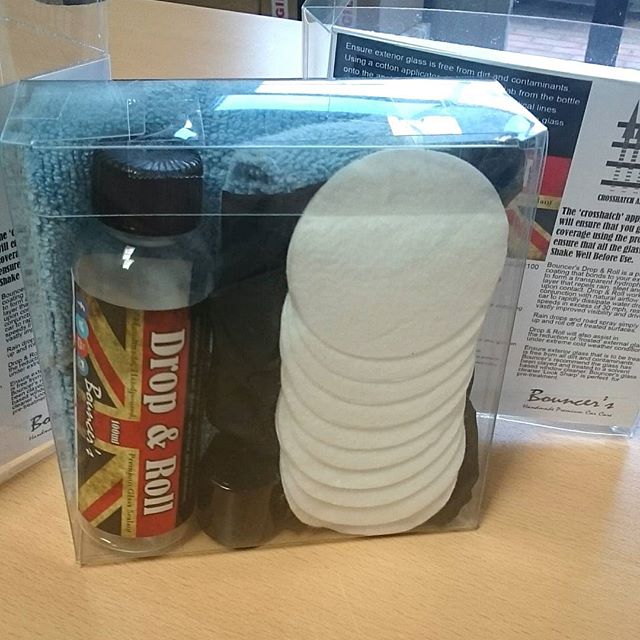 Bouncer's Drop & Roll is a protective coating that bonds to your exterior glass to form a transparent, hydrophobic barrier layer that repels rain, sleet and snow upon contact. Drop & Roll works in conjunction with the natural airflow over the car to rapidly dissipate water droplets at speeds on excess of 30mph, resulting in vastly improved visibility and driver safety.